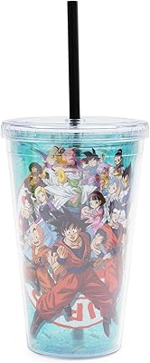Dragon Ball Super Characters Plastic Carnival Cup With Spill-Resistant Lid and Reusable Straw | Double-Walled Travel Tumbler For Drinks | Holds 16 Ounces