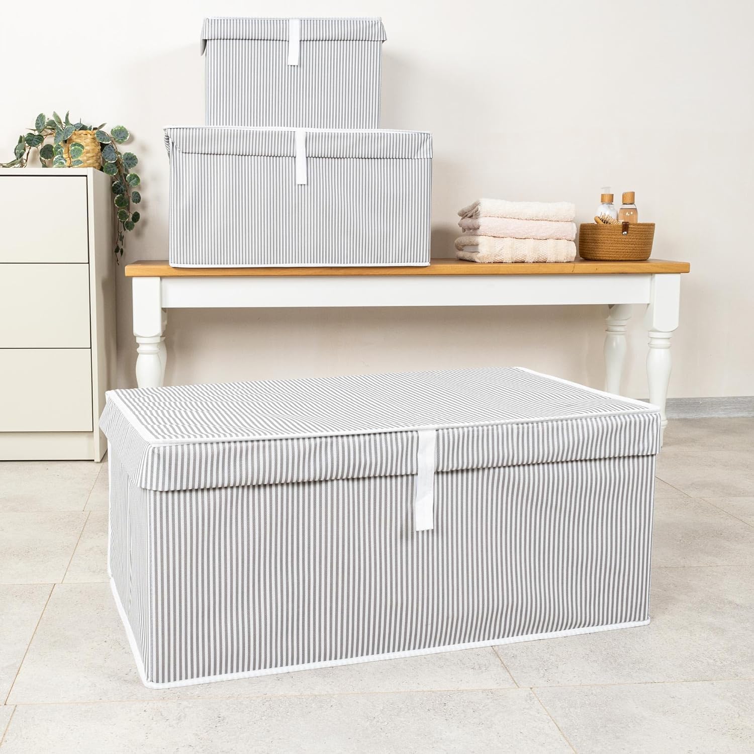 Orret Home Multi-Purpose Lid Crate Type Hurch Organizer – Large Size Storage Box – Hard and Durable Storage Solution for Cabinet Inside, Under Bed and Under Base – Foldable Grey, 70x40x30 Cm